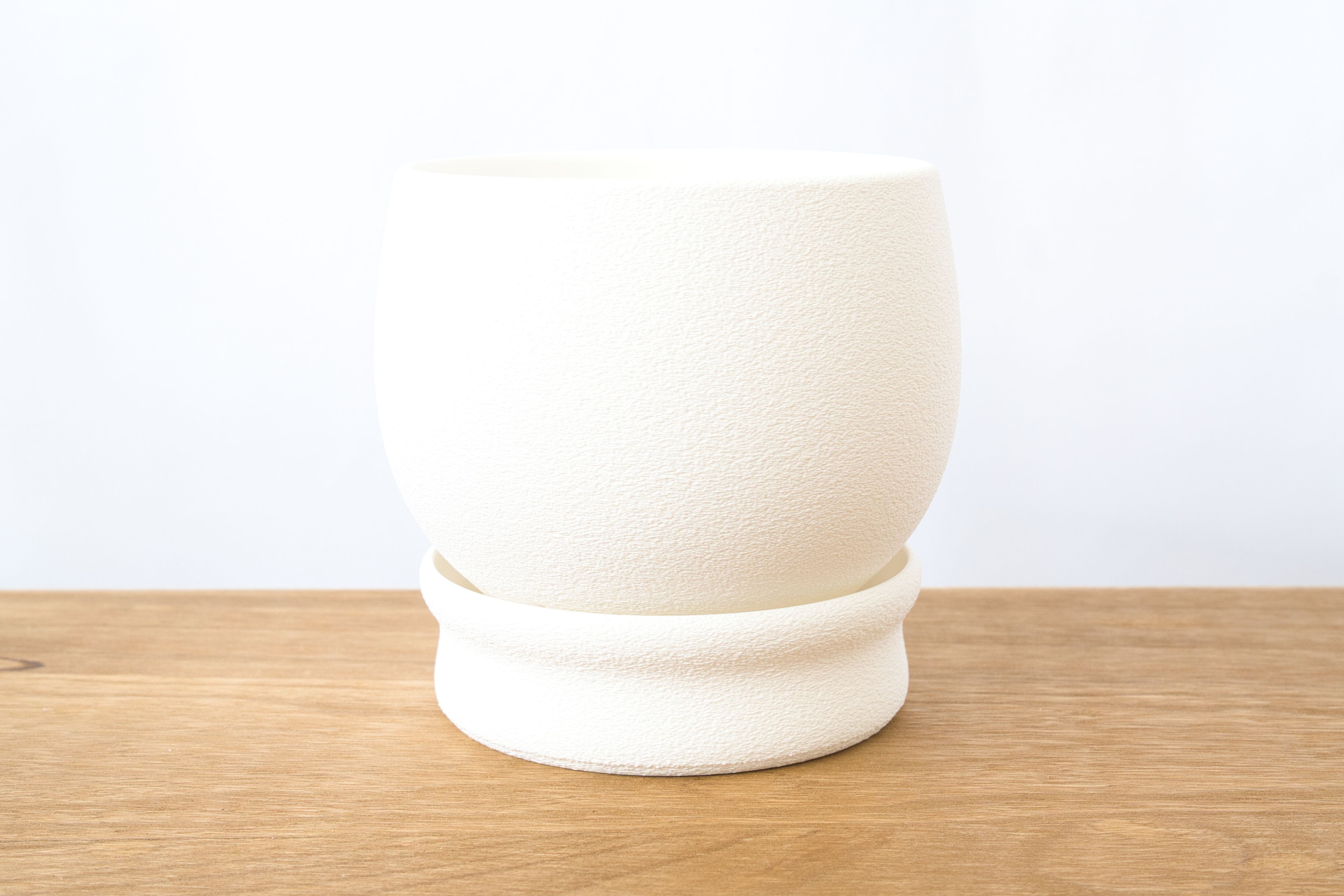 ザラっとしたマットな質感の受け皿付きの鉢です。