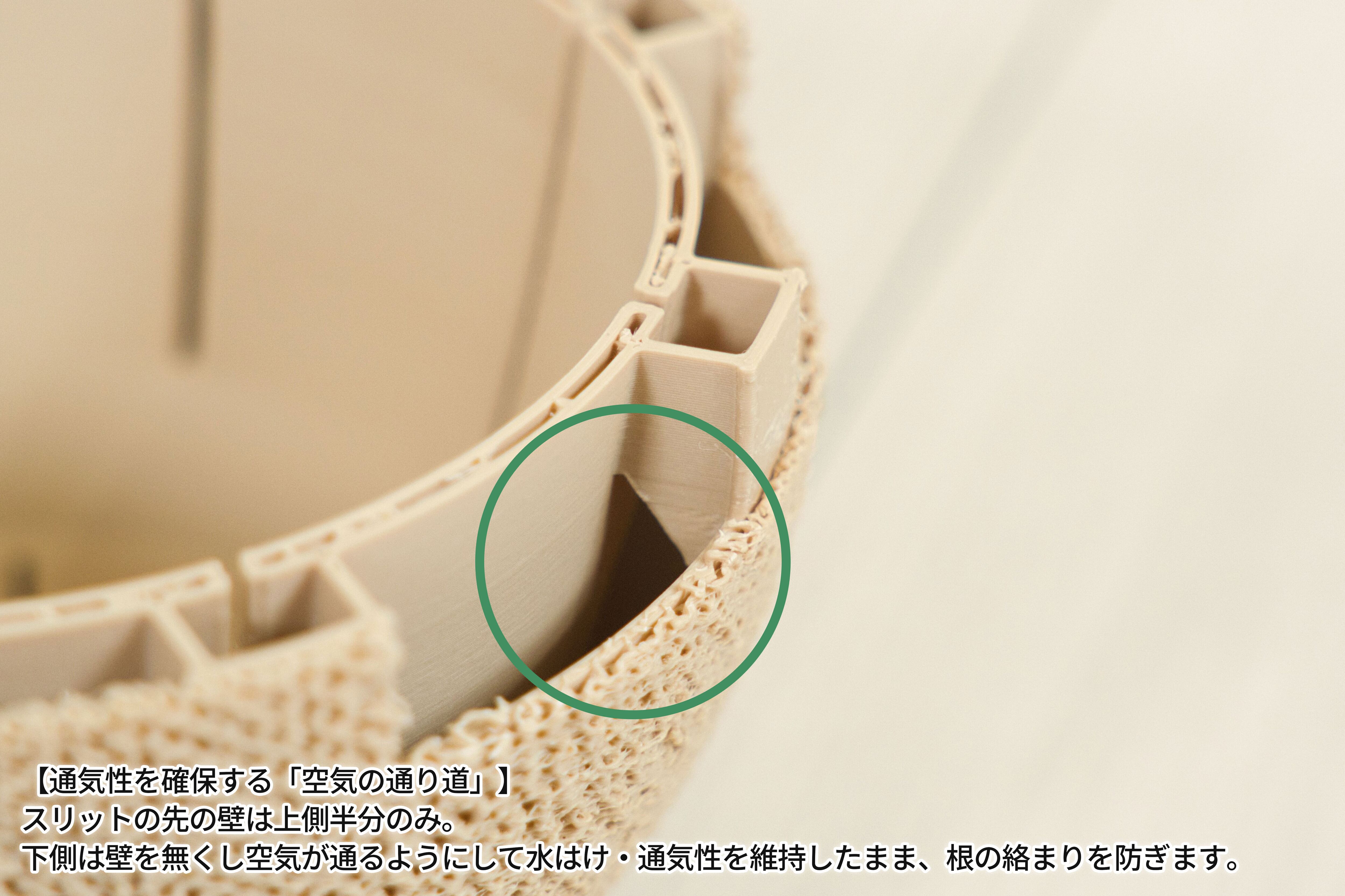 ・鉢を二層構造にすることで、通気性と根っこの絡まりにくさを両立