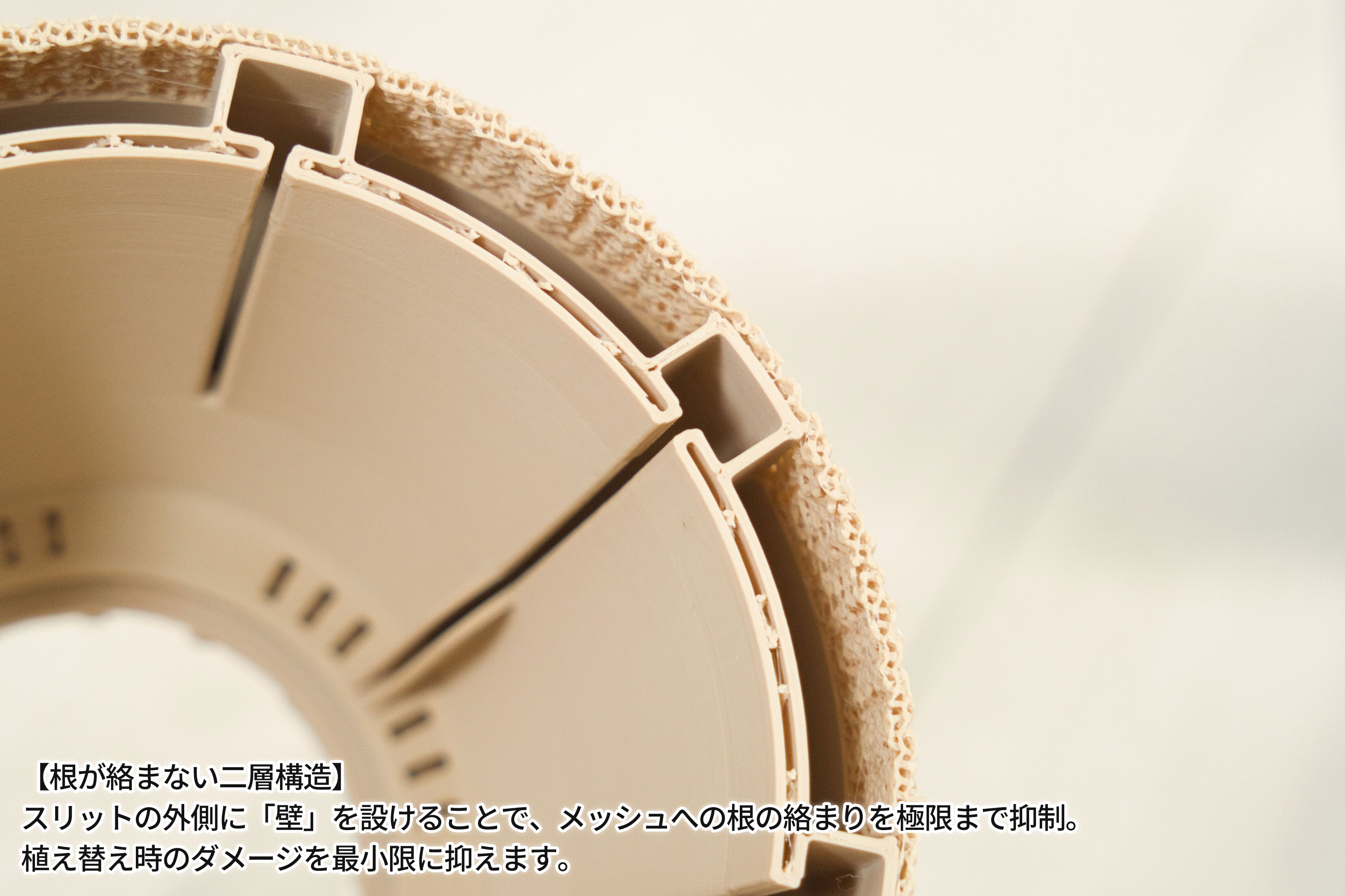 ・鉢を二層構造にすることで、通気性と根っこの絡まりにくさを両立